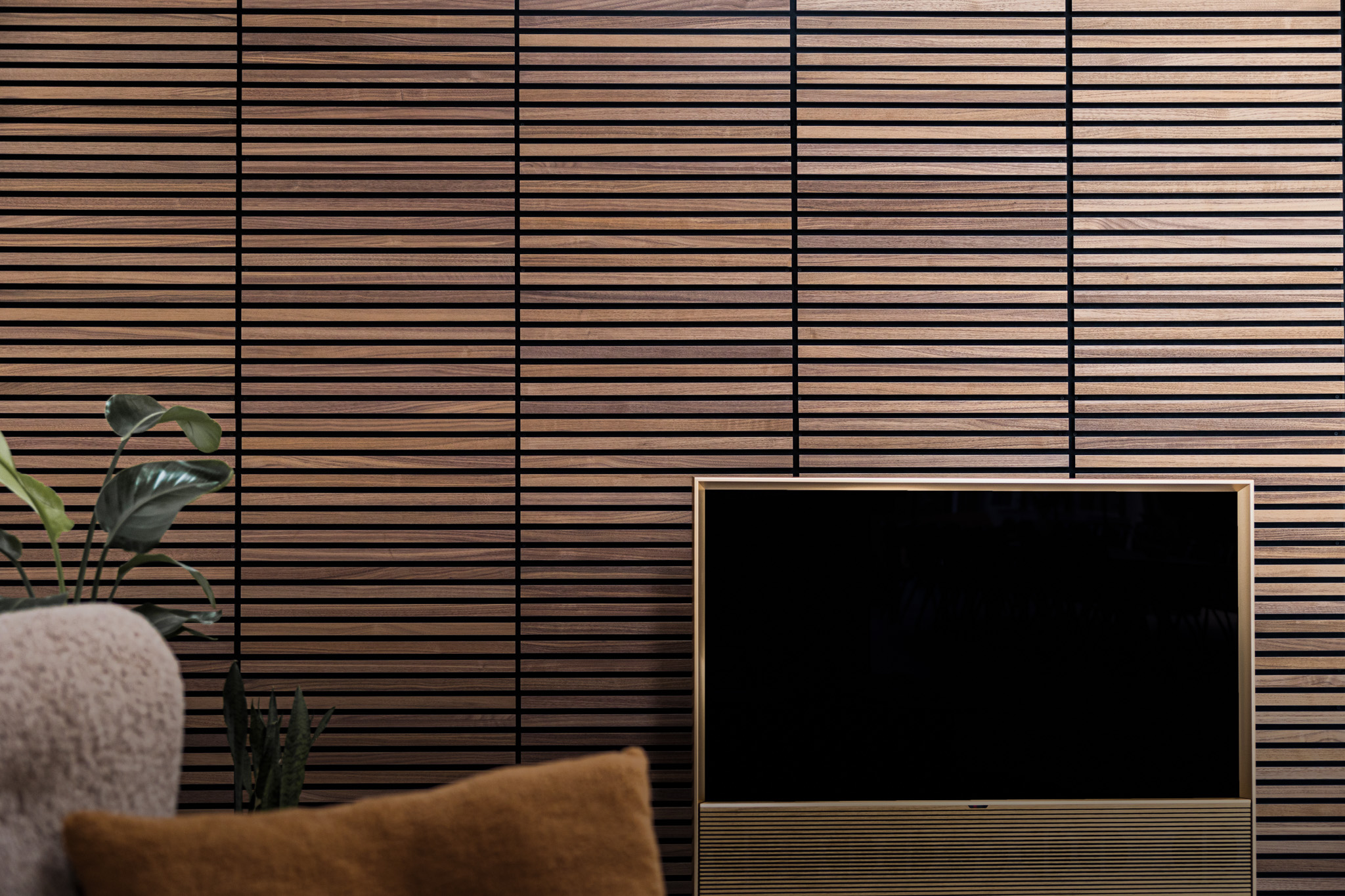 Geluidsdempende lattenwand-panelen die zijn ontworpen om echo te verminderen en de uitstraling en sfeer van je ruimte te versterken.