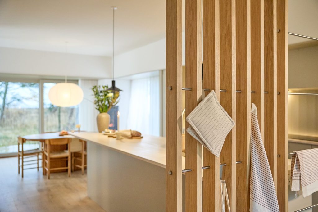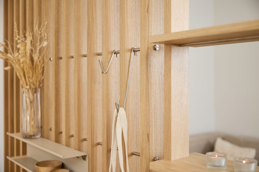 Gemaakt van natuurlijk eikenfineer en geborsteld roestvrij staal, creëert BM1 duidelijke scheiding en structuur. Je kunt de opstelling aanpassen, de indeling opnieuw configureren en accessoires toevoegen naarmate jouw behoeften veranderen.