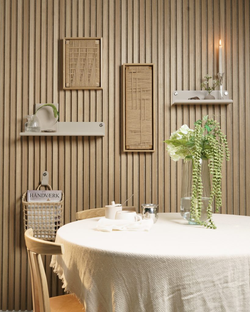 Chaque Akupanel que nous créons est conçu pour faire plus qu’améliorer l’acoustique. Il transforme votre maison. Nous utilisons des placages sélectionnés avec soin provenant de forêts certifiées FSC, associés à du MDF durable et du feutre recyclé haute densité, pour garantir un aspect haut de gamme et des performances durables. Contrairement aux alternatives produites en masse, nous fabriquons nos panneaux dans nos propres usines au Danemark, ce qui nous permet de contrôler entièrement la qualité à chaque étape, des matières premières à l’inspection finale.