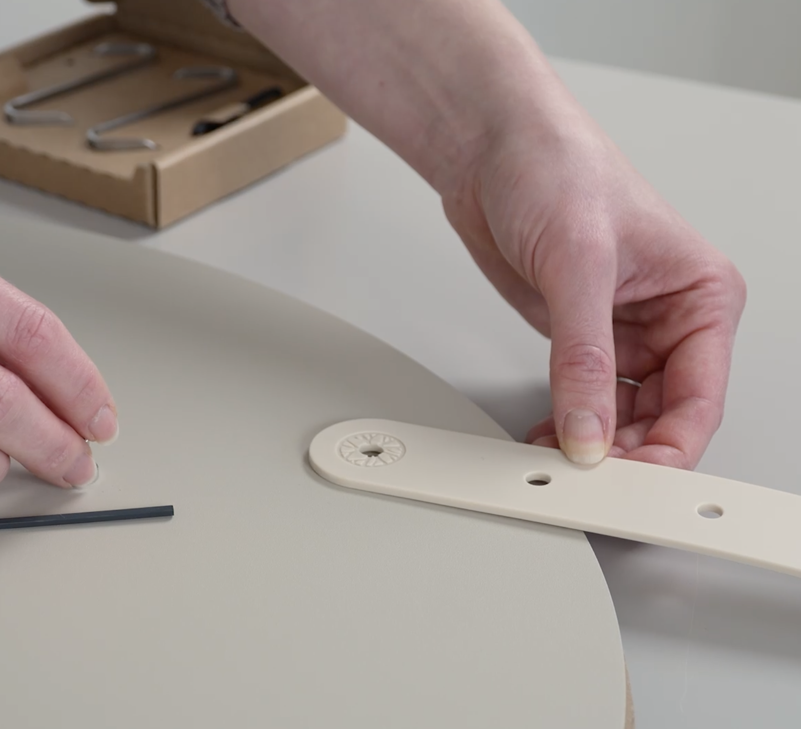 Accrochez le miroir directement sur BM1 à l’aide des S-Hook. Ajustez la hauteur avec les sangles jusqu’à ce qu’il s’adapte à votre routine. Déplacez-le chaque fois que votre configuration change.