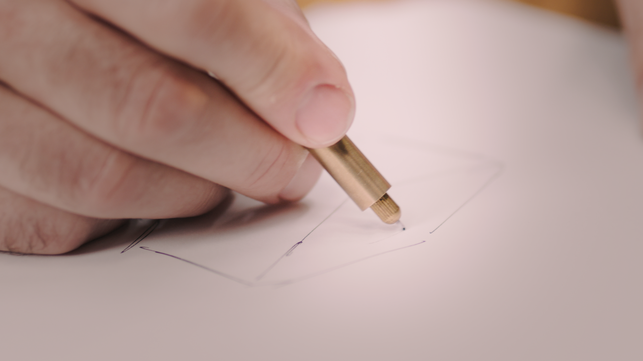Martin houdt ervan om slimme, eenvoudige oplossingen te vinden voor complexe problemen. Zijn eerste schetsen richtten zich op het ophangen van fotolijsten. Hij maakte een 3D-geprint prototype met vleugels die zich vastklemmen achter de latten, vastgezet met een soort mini-bankschroef mechanisme.