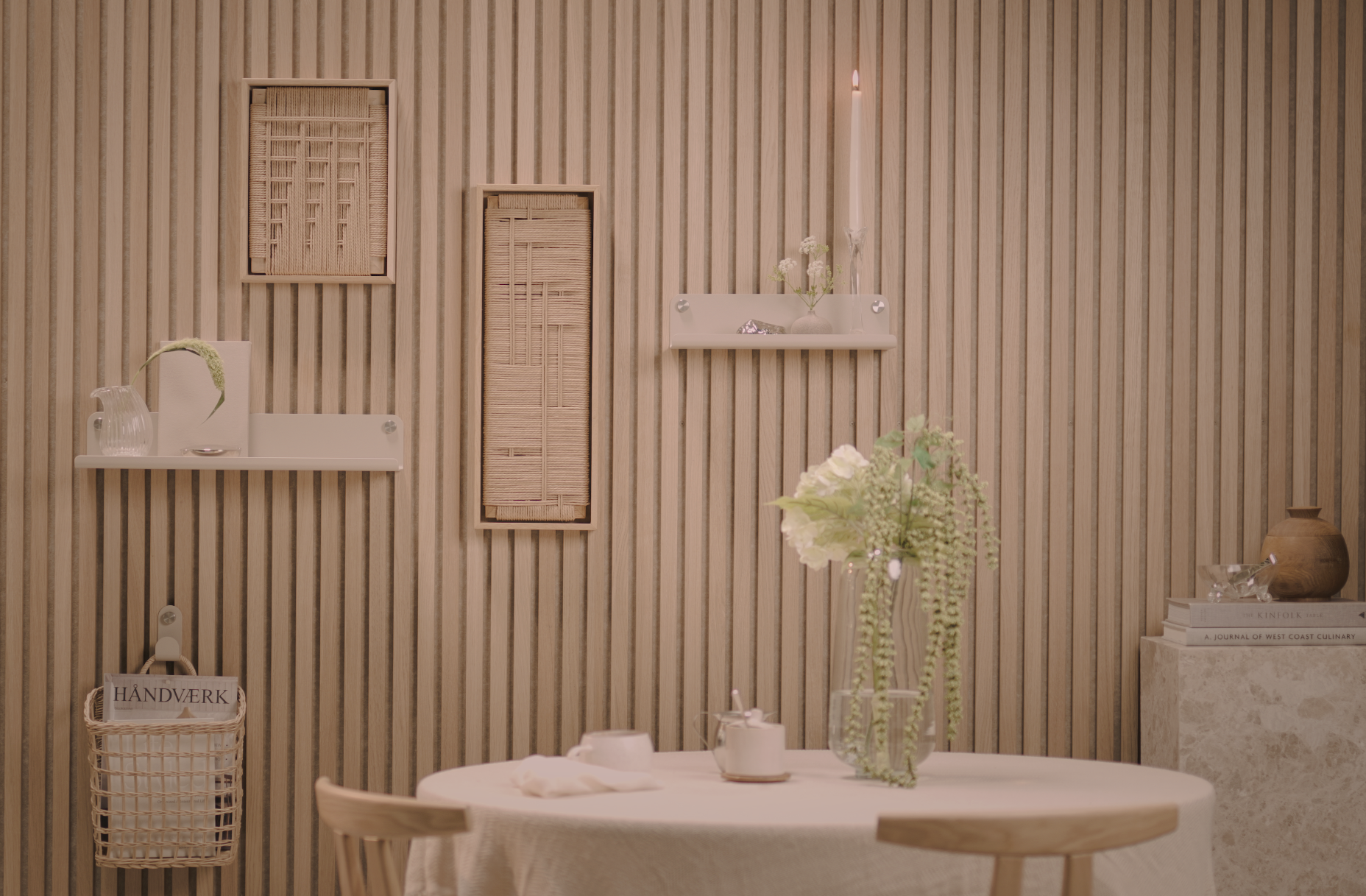 Precies dat gebeurde toen ontwerper Martin Sonne tegen een simpele maar frustrerende beperking aanliep: hoe hang je planken op verticaal gemonteerde Akupanels zonder in de muur te boren? In plaats van zich neer te leggen bij de beperkingen, herbedacht hij de hele ervaring.